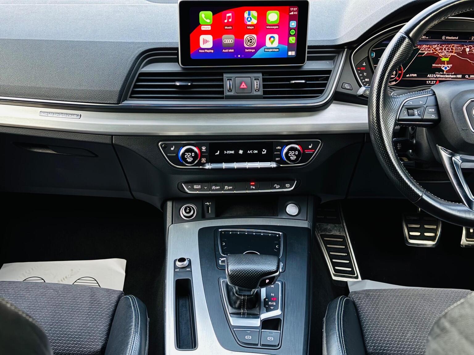19in Alloy Wheels - 5-Twin-Spoke Star Design - Diamond Cut Finish, 2 x SDXC Card Readers, 2 x USB Charging Ports and 1 x AUX-IN, 4-Way Electric Lumbar Support, 6-Airbag System, Aluminium Roof Rails, Anti Theft Locking Wheel Bolts, Anti-Theft Alarm, Audi Connect Infotainment Services - 3 Month Trial, Audi Connect Safety and Service - e-call, Audi Drive Select, Audi Parking System Plus, Audi Pre-Sense City, Audi Smartphone Interface, Audi Sound System, Auto-Dimming Rear-View Mirror, Automatic Headlight Adjustment, Bluetooth Interface, Body Coloured Door Mirrors, CD Drive, Cloth Headlining in Black, Colour Drivers Information System with 7in Display, Contrast Stitching on Seats - Steering Wheel and Gear Lever Gaiter, Cruise Control with Speed Limiter, DAB Digital Radio, Deluxe 3-Zone Climate Control, Door Mirrors - Electrically Folding and Heated, Dynamic Suspension, ESC - Electronic Stabilisation Control inc ABS - ASR and EDL, Electric Windows - Front and Rear, Electromechanical Parking Brake, Electromechanical Power Steering, Email - Calendar and Text Messages can be Displayed on your Vehicles MMI, First Aid Kit and Warning Triangle, Front Centre Armrest, Front Sports Seats with S Embossed Logo, Front and Rear Floor Mats, Gear Lever Knob in Black Perforated Leather, Headlights - High-Beam Assist, Heated Front Seats, High Multi-function 3-Spoke Leather Steering Wheel with Grips in Perforated Leather and S Badging with Gear-Shift Paddles, High-Gloss Package, Hill Descent Control, Hill Hold Assist, ISOFIX Child Seat Mounting and Top Tether, Illuminated Door Sill Trims with S Logo, Inlays - Matt Brushed Aluminium, Keyless Go, LED Headlights with LED Rear Lights and Dynamic Rear Indicators, LED Interior Lighting Pack, Light and Rain Sensor, MMI Navigation - SD Card Based, MMI Radio Plus with 7in Colour MMI Screen and MMI Controller, Manual Seat Adjustment, Multi Collision Brake Assist, Pedals in Stainless Steel, Pop-Up Bonnet for Pedestrian Protection, Power Operated Tailgate, Privacy Glass with Acoustic Glazing For Front Windows, Radiator Grille in Twilight Grey with Horizontal Matt Aluminium Struts, Rear Diffuser in Body Colour with Matt Aluminium Silver Surrounds, Remote Central Locking, Removable Luggage Compartment Floor, Removable Net Partition, S Line Badges on the Front Wing Panels, S Line Front and Rear Bumpers, S Line Roof Spoiler, S Line Side Skirts, Seat Belt Monitoring, Side and Rear Windows in Heat-Insulating Glass, Split Folding Rear Seat Bench - 40-20-40 with Rear Seat Armrest, Stainless Steel Loading Sill Protector, Sun Visors - with Vanity Mirror, Tool Kit, Tow Bar Preparation, Tyre Pressure Warning Light, Tyre Repair Kit, Underbody Protection in Body Colour, Voice Control System, Windscreen with Acoustic Glass, quattro On Demand