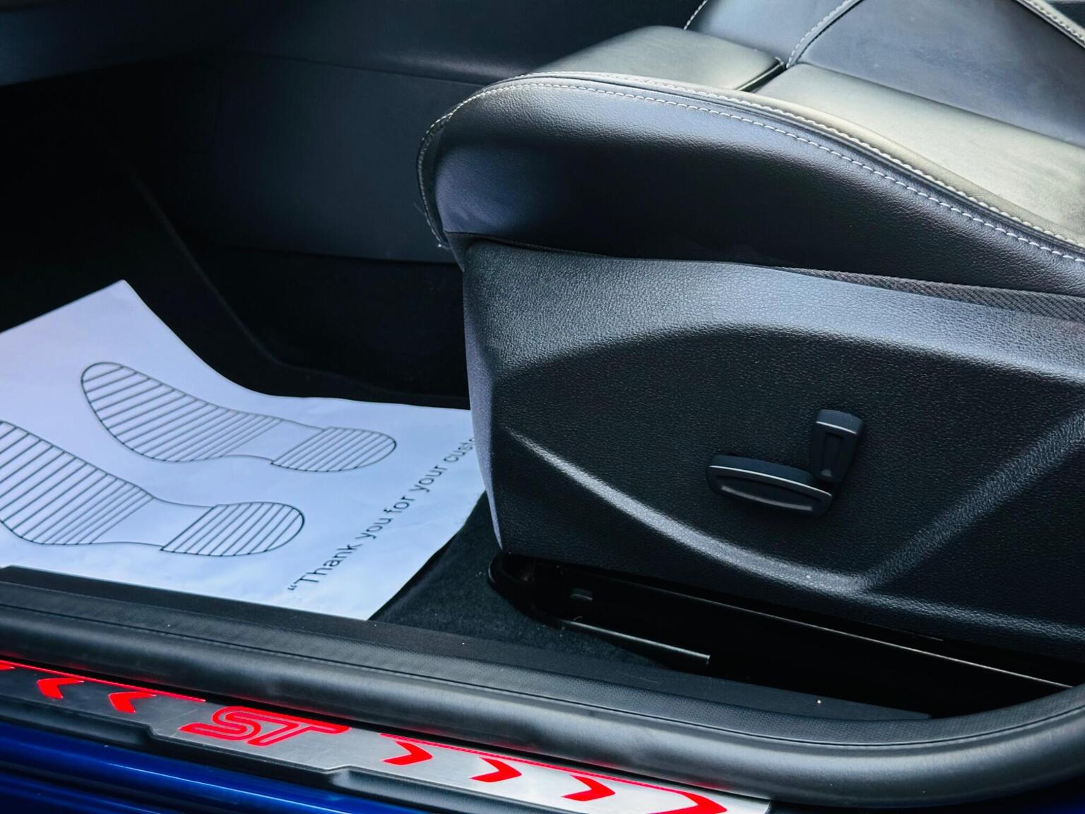 18in Alloy Wheels - 10 Spoke - Rock Metallic, 8in Touchscreen Colour Display, ABS - Anti-lock Braking System, AUX Connection, Air Conditioning - Dual Zone Electronic Automatic Temperature Control, Airbag - Front Passenger, Airbags - Curtain, Airbags - Passenger Deactivation, Airbags - Side Impact, Armrest - Centre Console, Automatic Dimming Rear View Mirror, Automatic Rain Sensing Wipers, Bi-Xenon Headlights, Bluetooth Hands-free Phone, Brake Calipers Painted Red, Centre Console - additional 12V power socket, City Pack, Colour TFT Instrument Cluster Display, Cruise Control with Adjustable Speed Limiter, DAB Digital Radio, DDS - Deflation Detection System, Drivers Airbag, EBA - Emergency Brake Assist, EBD - Electronic Brakeforce Distribution, EPAS - Electric Power Assisted Steering, ESP - Electronic Stability Programme, Electric Windows - Front and Rear with One Touch Drivers, Emergency Assistance, Emergency Brake Warning, Floor Mats - Carpet - Front, Floor Mats - Rear Carpet, Ford AM-FM CD Audio System, Ford SYNC, Gear Knob - Leather, Headlights - Adaptive, Headlights - Automatic, Headlights - Follow Me Home, Headlights - Jet Wash, Heated Driver and Passenger Seats, Heated Front Windscreen, Hill Start Assist, IPS - Intelligent Protection System, KeyFree System, Keyless Start, LED Ambient Courtesy Lighting, LED Daytime Running Lights, MyKey, Parking Sensor - Rear, Power Fold Door Mirrors, Premium Centre Console, Privacy Glass, Recaro Sculpted 3-Seater Rear Bench Seat, ST Front Door Scuff Plates - Illuminated, ST Full Body Styling Kit, Seats - 60-40 Rear Split Back, Seats - Drivers Height Adjustment, Seats - Front 8-Way Power Adjustment, Seats - Front Recaro Sports, Speed Limiter, TVC - Torque Vectoring Control, Thatcham Category 1 Alarm, Traction Control - TC, Trip Computer, Tyre Pressure Monitoring System, USB Connection, Unique ST Rear Spoiler, Voice Control - Audio