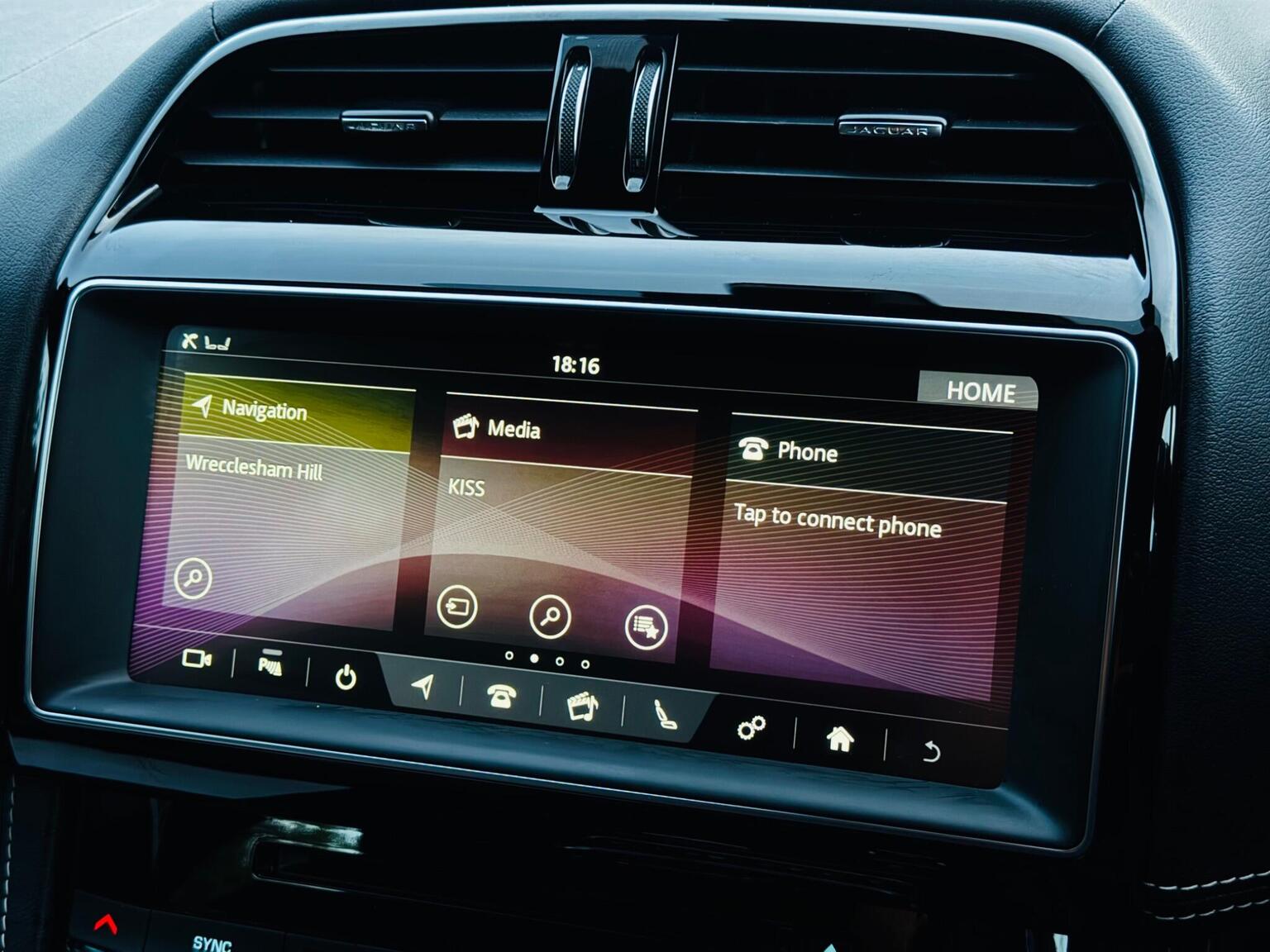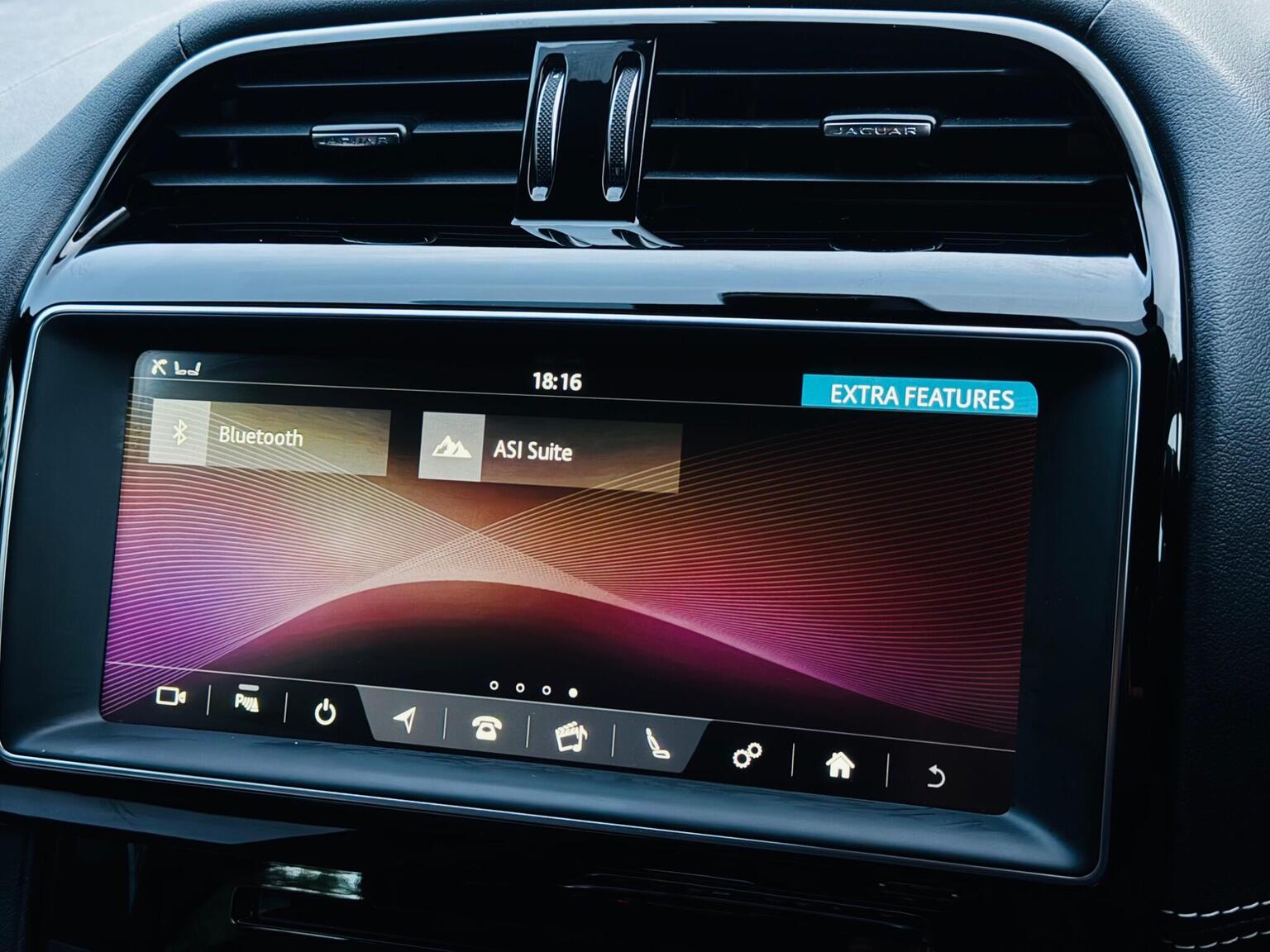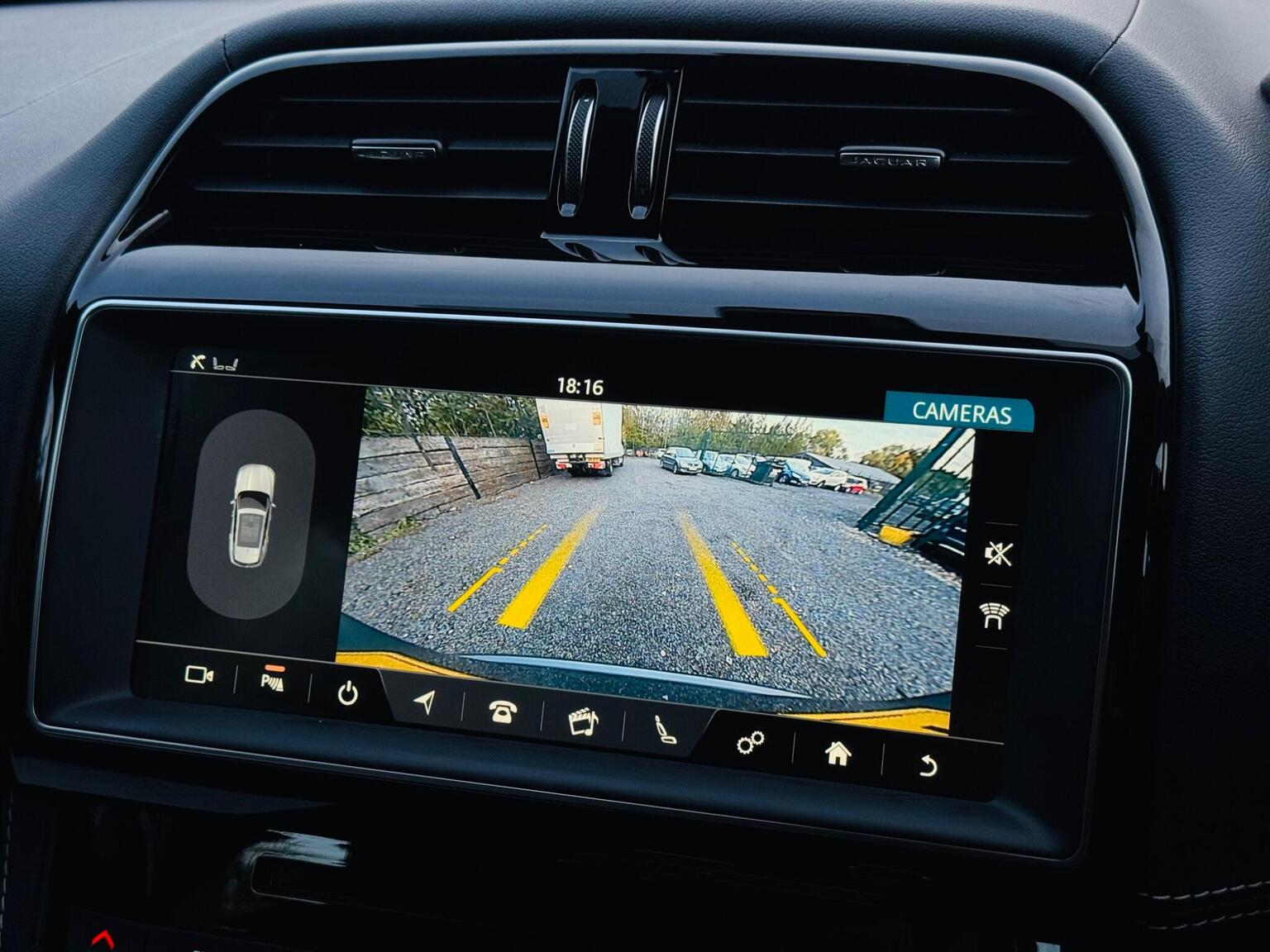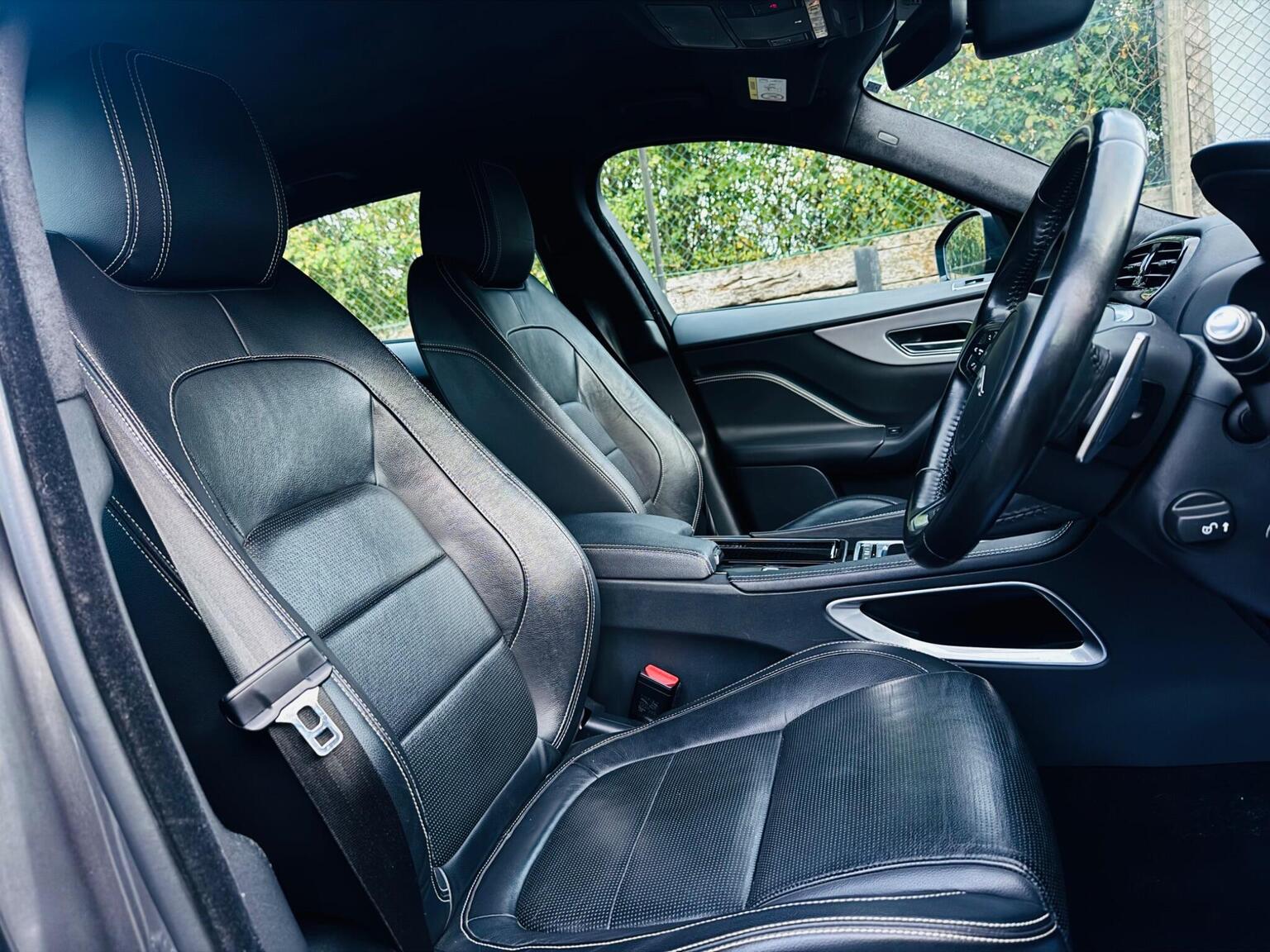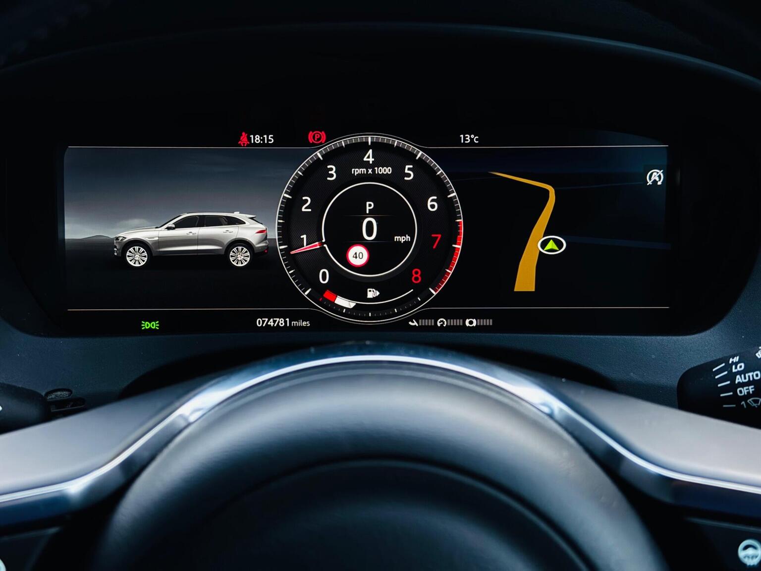 Pro Services and Wi-Fi Hotspot, Protect for Warranty Period, R-Sport Rear Bumper, Rain Sensing Windscreen Wipers, Rear Air Vents, Rear Armrest with Twin Cupholders, Rear Camera, Rear Centre Headrest, Rear Fog Lights, Rear Metal Treadplates, Remote Premium for Warranty Period, Rotary Shifter, Satin Chrome Side Vents with R-Sport Badge, Satin Chrome Touchscreen Surround, Seat Belt Reminder, Seats - Sports, Speed Proportional Steering, Start Up Sequence with Movement - Dials and Lighting, Steering Wheel - Multi-Function, Steering Wheel - R Sport Branded Soft Grain Leather, Steering Wheel - Satin Chrome Paddles, Torque Vectoring, Traffic Sign Recognition with Adaptive Speed Limiter, Trailer Stability Assist, Trip Computer, Twin Front Cupholders with Cover, Tyre Pressure Monitoring System, Unpainted Brake Calipers, Valet Mode, Variable Intermittent Wipers, Voice Control, Xenon Headlights with LED Signature, 10in Touch Pro, 19in Alloy Wheels - 5 Split-Spoke Style 5038 - Grey Diamond Turned, 2-Zone Climate Control, 25t AWD Badge, 3-Flash Lane Change Indicators, 325mm Front Brakes, 40-20-40 Split Fold Rear Seat, 8-Way Manual Front Seats, ABS - Anti-locking Braking System, AM-FM Radio, ASPC - All Surface Progress Control, Airbags - Front Side, Airbags - Full Length Side Window Curtain, Ambient Interior Lighting, Analogue Dials with Central TFT Display, Approach Illumination, Auto-Dimming Interior Rear View Mirror, Bluetooth Connectivity, Bluetooth Streaming, Body-Coloured R-Sport Door Claddings with Satin Black Finishers, Brake Pad Wear Indicator, Bright Metal Pedals, Centre Console - Side Stowage, Centre Console - Storage Surround Finishers - Satin Chrome, Centre Console with Armrest, Connect Pro, Cruise Control with Speed Limiter, Digital Audio Broadcast - DAB - Radio, Door Trim - Luxtec, Driver Condition Monitor, Dynamic Stability Control - DSC, Dynamic Volume Control, EBA - Emergency Brake Assist, ECO Driving Style Assistant, EPAS - Electric Power Assisted Steering, EPB - Electronic Parking Brake, Ebony Morzine Headlining, Ebony Suedecloth Headlining, Electric Windows - Front and Rear with One-Touch Open-Close and Anti-Trap, Electrically Adjustable Heated Door Mirrors, Emergency Braking, Etched Aluminium Trim Finisher, F-PACE Badge, Front Airbags with Passenger Seat Occupant Detector, Front Bumper - R Sport, Front Fog Lights, Front Headrests, Front Windscreen with Non-acoustic Layer, Front and Rear Parking Aid, Gloss Black Roof Rails, Gloss Black Side Window Surround, Glovebox Finisher with Jaguar Script, Grained Black Grille with Satin Chrome Surround, Green Tinted Glass, Headlight Power Wash, Heated Front Seats, Heated Rear Window, Hill Launch Assist, Hook in Loadspace, ISOFIX Rear, Illuminated Metal Treadplates with Brand-Name Script, InControl Apps, Interior Front Door Handles with Separate Locking Switches, Jaguar Script and Leaper, Jaguar Sound System, Jaguar Tyre Repair System, JaguarDrive Control, LED Tail Lights, Lane Keep Assist, Loadbay - Luggage Tie Downs, Lockable Glovebox, Luxtec Wrapped Instrument Panel Topper with Wrapped Binnacle, Manually Adjustable Steering Column, Metal Loadspace Scuff Plate, Navigation Pro, No Loadspace Storage Rails, Open Differential with Torque Vectoring by Braking, Outside Temperature Gauge, Overhead Lighting Console, Passive Front Head Restraints, Power Operated Child Locks, Power Sockets, Powered Tailgate - Boot Lid, Premium Carpet Mats