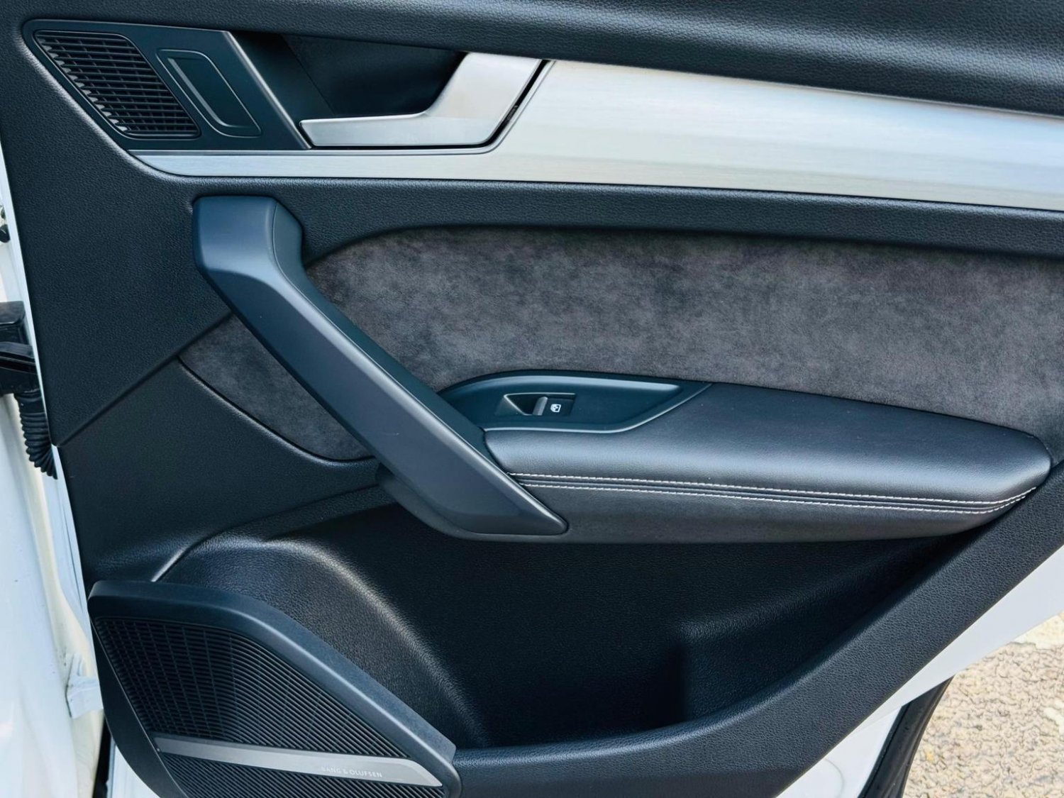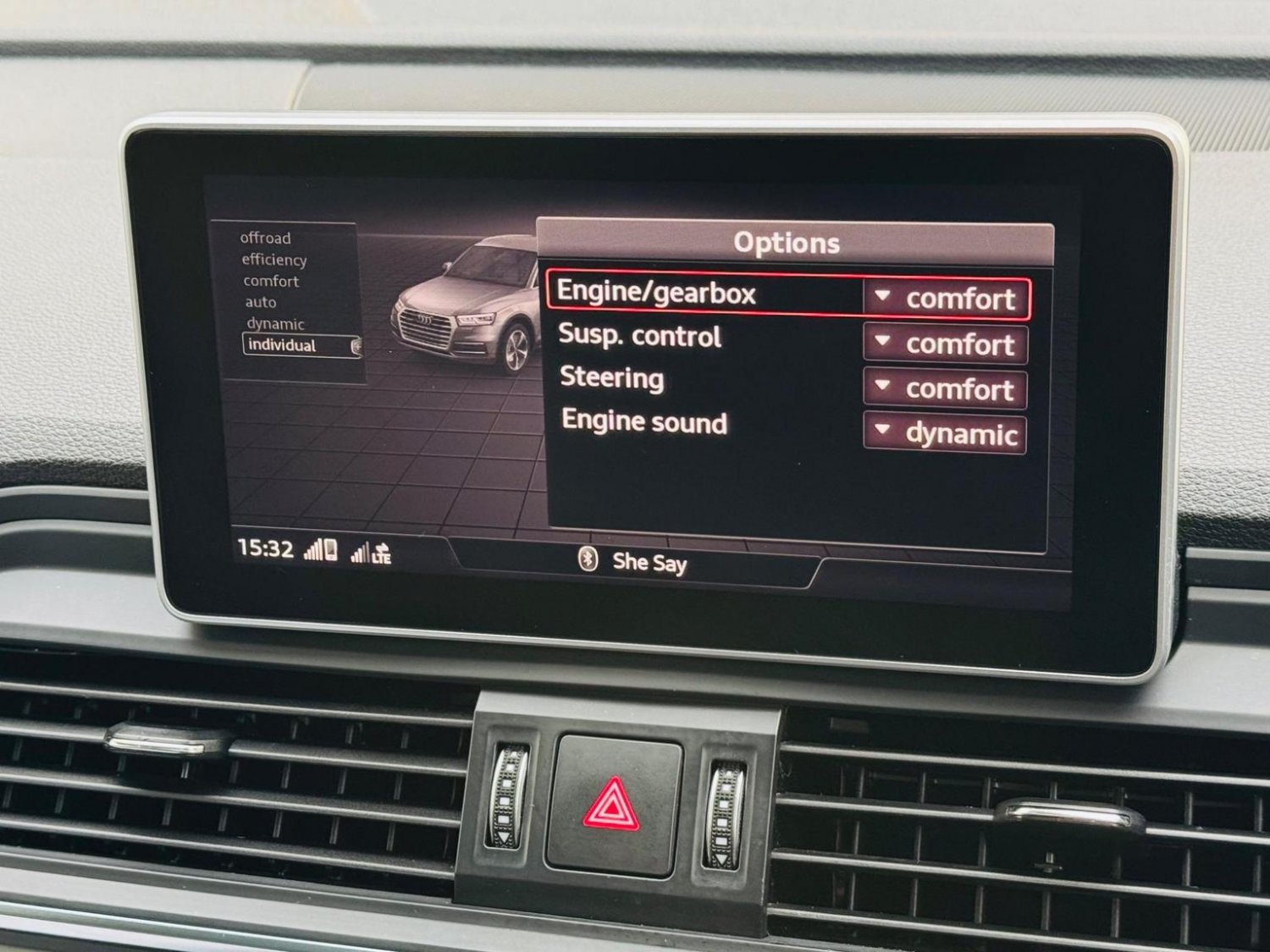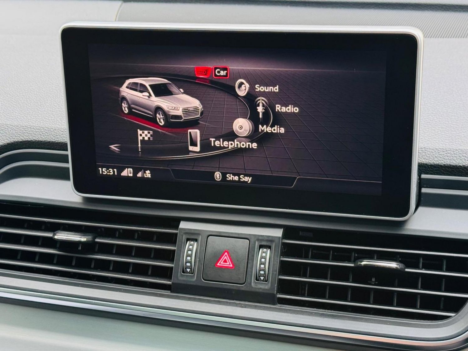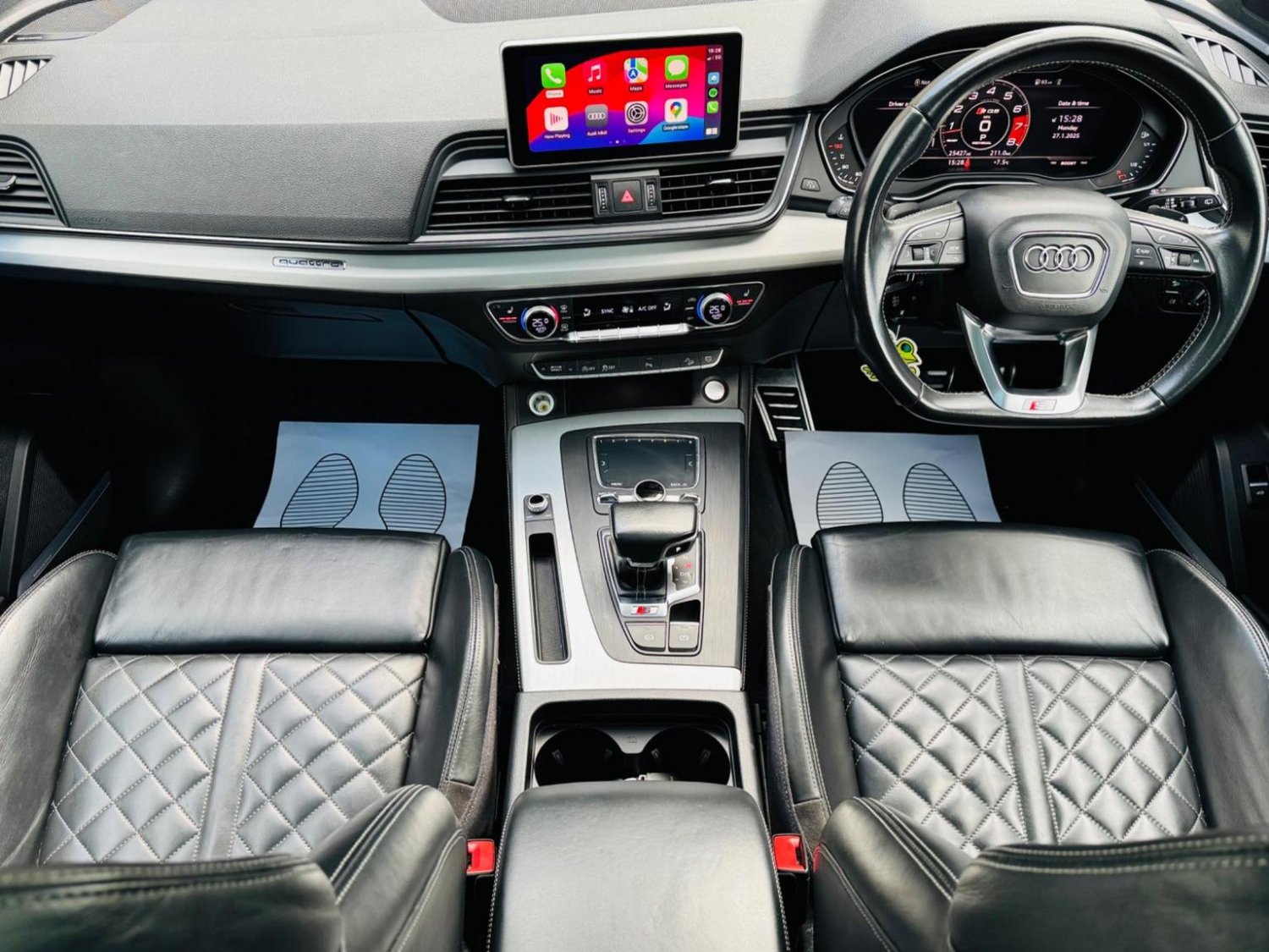2 x SDXC Card Readers, 2 x USB Charging Ports and 1 x AUX-IN, 20in Alloy Wheels - 5-Twin-Spoke Star Design Contrasting Grey - Diamond Cut, 4-Way Electric Lumbar Support, 6-Airbag System, Aluminium Roof Rails, Aluminium-Effect Door Mirror Housings, Anti Theft Locking Wheel Bolts, Anti-Theft Alarm, Audi Beam, Audi Connect Infotainment Services - 3 Month Trial, Audi Connect Safety and Service - e-call, Audi Drive Select, Audi Parking System Plus, Audi Pre-Sense City, Audi Smartphone Interface, Audi Sound System, Auto-Dimming Rear-View Mirror, Automatic Headlight Adjustment, Bluetooth Interface, Brake Calipers Painted in Black with SQ5 Logo at the Front, CD Drive, Cloth Headlining in Black, Colour Drivers Information System with 7in Display, Contrast Stitching on Seats - Steering Wheel and Gear Lever Gaiter, Cruise Control with Speed Limiter, DAB Digital Radio, Deluxe 3-Zone Climate Control, Door Inserts in Matt Selenite Silver, Door Mirrors - Electrically Adjustable and Heated with Integrated LED Side Indicators, ESC - Electronic Stabilisation Control inc ABS - ASR and EDL, Electric Windows - Front and Rear, Electrically Adjustable Front Seats, Electromechanical Parking Brake, Electromechanical Power Steering, Extended Interior Upholstery Pack, First Aid Kit and Warning Triangle, Front Centre Armrest, Front and Rear Floor Mats, Gear Lever with Diamond S Badge in Black Perforated Leather, Headlights - High-Beam Assist, Heated Front Seats, High Multi-function 3-Spoke Leather Steering Wheel with S Badging and Aluminium Effect Paddles, High-Gloss Package, ISOFIX Child Seat Mounting and Top Tether, Illuminated Door Sill Trims with S Logo, Inlays - Matt Brushed Aluminium, Key with SQ5 Logo, Keyless Go, LED Headlights featuring Q Signature Design with LED Rear Lights and Dynamic Rear Indicators, LED Interior Lighting Pack, LED Rear Lights, Light and Rain Sensor, Luggage Compartment Cover, Luggage Compartment Mat, MMI Navigation Plus including MMI Touch, MMI Radio Plus with 7in Colour MMI Screen and MMI Controller, Non-Smoking Package, Pedals in Stainless Steel, Pop-Up Bonnet for Pedestrian Protection, Power Operated Tailgate, Privacy Glass with Acoustic Glazing For Front Windows, Radiator Grille in Matt Twilight Grey with Horizontal Matt Aluminium Struts, Rear Bench Seat Plus, Rear Spoiler, Remote Central Locking, Removable Luggage Compartment Floor, Removable Net Partition, S Dual-Branch Tailpipe Design in Matt Aluminium, S Instrument Dials, S Line Badges on the Front Wing Panels, S Line Front and Rear Bumpers, S Line Side Skirts, S Lower Front Air Inlet, S Rear Diffuser in Body Colour with Matt Aluminium Surrounds with Honeycomb Grille in Black, S Side Air Inlet Grille in Matt Titanium Black with Horizontal Inlays in Matt Aluminium, S Suspension with Damping Control, Seat Belt Monitoring, Side and Rear Windows in Heat-Insulating Glass, Split Folding Rear Seat Bench, Stainless Steel Loading Sill Protector, Tool Kit and Car Jack, Towbar Preparation, Tyre Pressure Warning Light, Tyre Repair Kit, Underbody Protection in Matt Selenite Silver, Voice Control System, Windscreen with Acoustic Glass, quattro On Demand