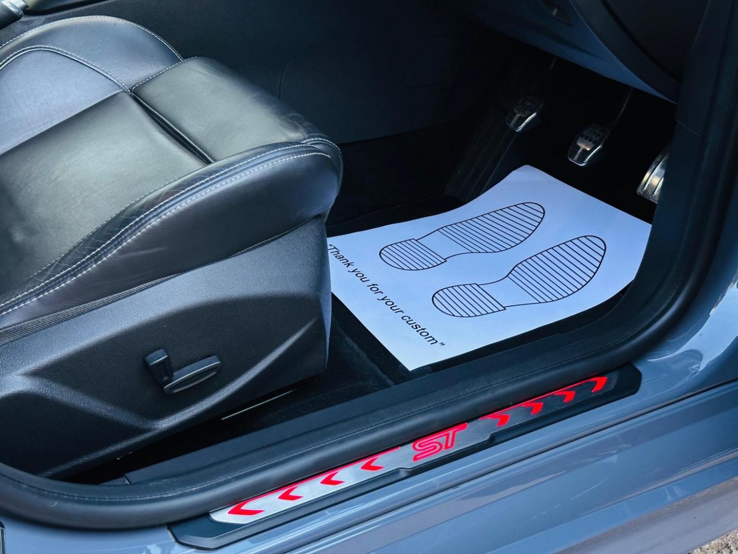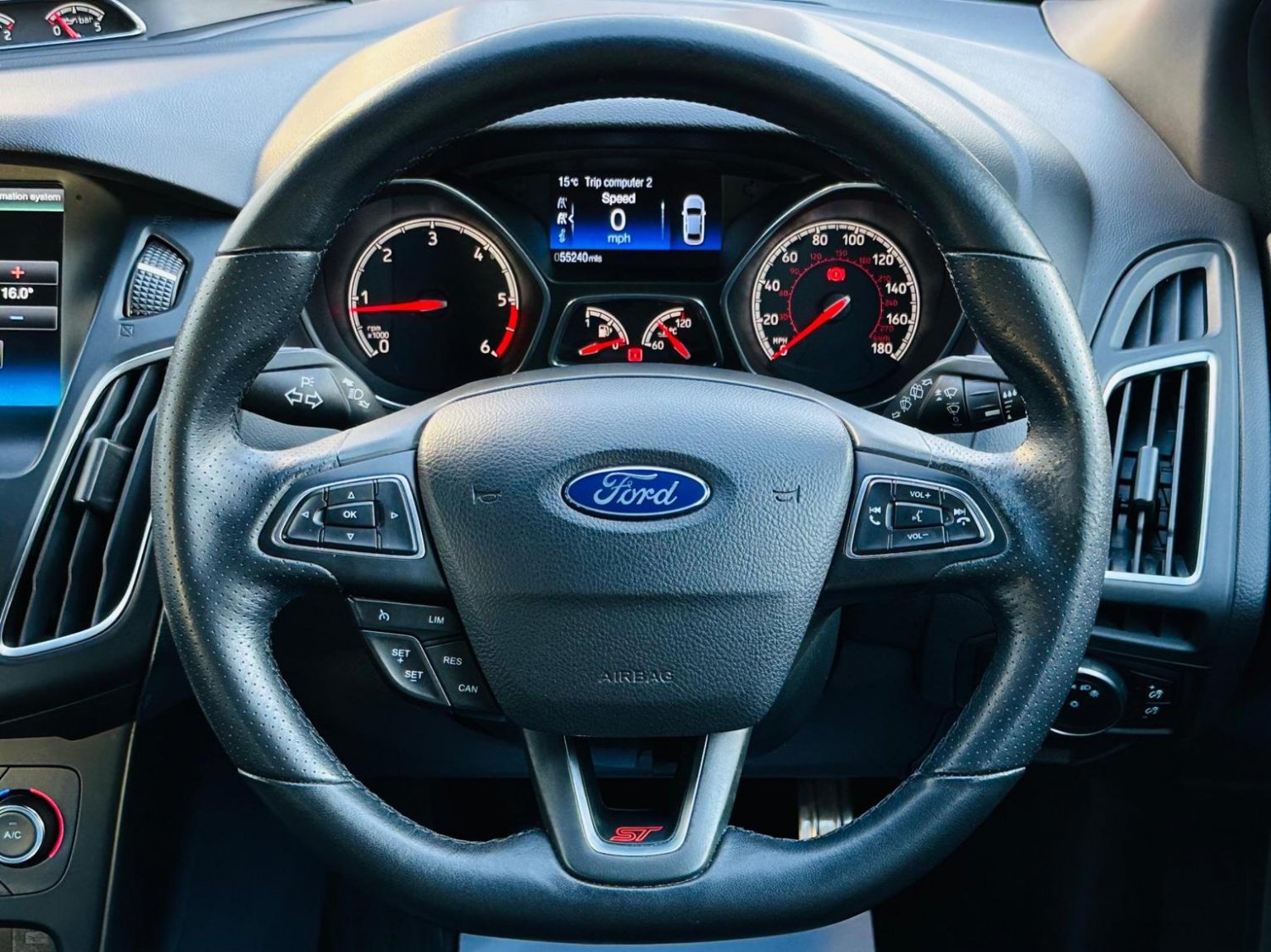 18in Alloy Wheels - 10 Spoke - Rock Metallic, 8in Touchscreen Colour Display, ABS - Anti-lock Braking System, AUX Connection, Air Conditioning - Dual Zone Electronic Automatic Temperature Control, Airbag - Front Passenger, Airbags - Curtain, Airbags - Passenger Deactivation, Airbags - Side Impact, Armrest - Centre Console, Automatic Dimming Rear View Mirror, Automatic Rain Sensing Wipers, Bi-Xenon Headlights, Bluetooth Hands-free Phone, Brake Calipers Painted Red, Centre Console - additional 12V power socket, City Pack, Colour TFT Instrument Cluster Display, Cruise Control with Adjustable Speed Limiter, DAB Digital Radio, DDS - Deflation Detection System, Drivers Airbag, EBA - Emergency Brake Assist, EBD - Electronic Brakeforce Distribution, EPAS - Electric Power Assisted Steering, ESP - Electronic Stability Programme, Electric Windows - Front and Rear with One Touch Drivers, Emergency Assistance, Emergency Brake Warning, Floor Mats - Carpet - Front, Floor Mats - Rear Carpet, Ford AM-FM CD Audio System, Ford SYNC, Gear Knob - Leather, Headlights - Adaptive, Headlights - Automatic, Headlights - Follow Me Home, Headlights - Jet Wash, Heated Driver and Passenger Seats, Heated Front Windscreen, Hill Start Assist, IPS - Intelligent Protection System, KeyFree System, Keyless Start, LED Ambient Courtesy Lighting, LED Daytime Running Lights, MyKey, Parking Sensor - Rear, Power Fold Door Mirrors, Premium Centre Console, Privacy Glass, Recaro Sculpted 3-Seater Rear Bench Seat, ST Front Door Scuff Plates - Illuminated, ST Full Body Styling Kit, Seats - 60-40 Rear Split Back, Seats - Drivers Height Adjustment, Seats - Front 8-Way Power Adjustment, Seats - Front Recaro Sports, Speed Limiter, TVC - Torque Vectoring Control, Thatcham Category 1 Alarm, Traction Control - TC, Trip Computer, Tyre Pressure Monitoring System, USB Connection, Unique ST Rear Spoiler, Voice Control - Audio
