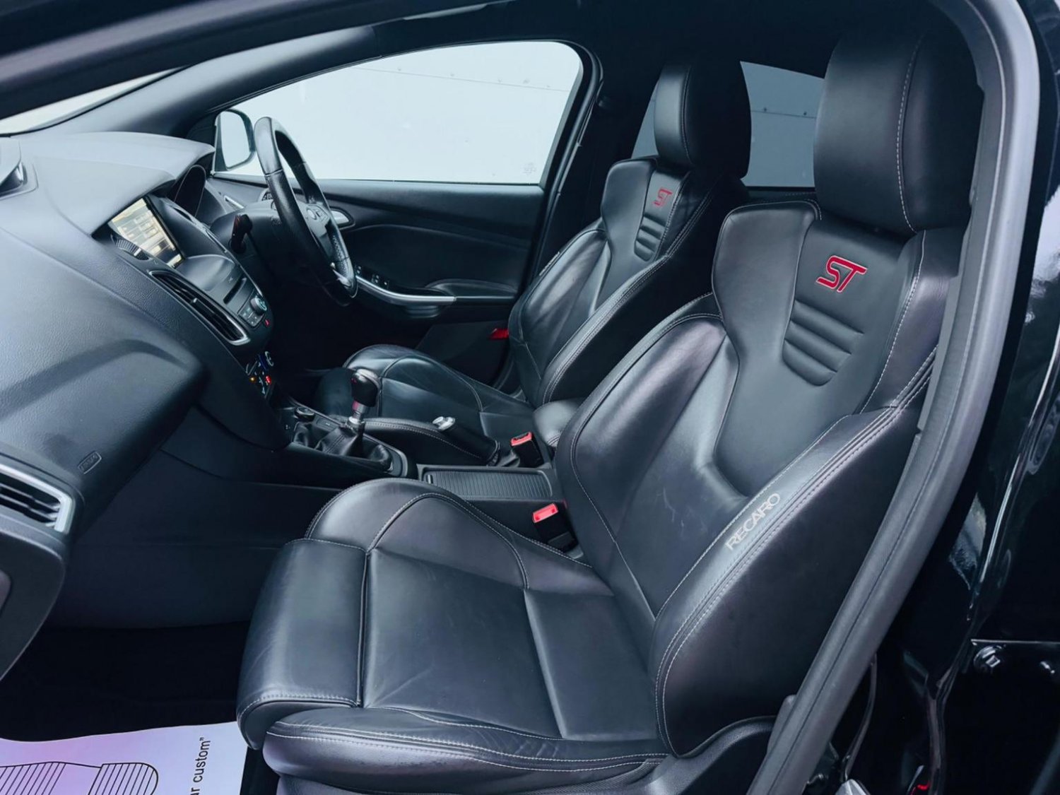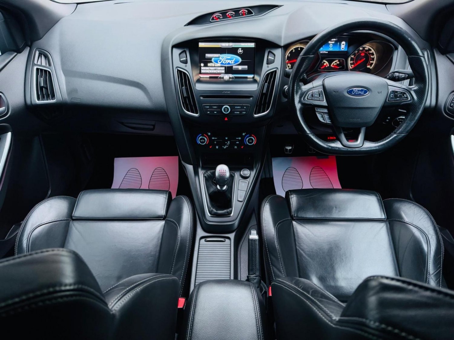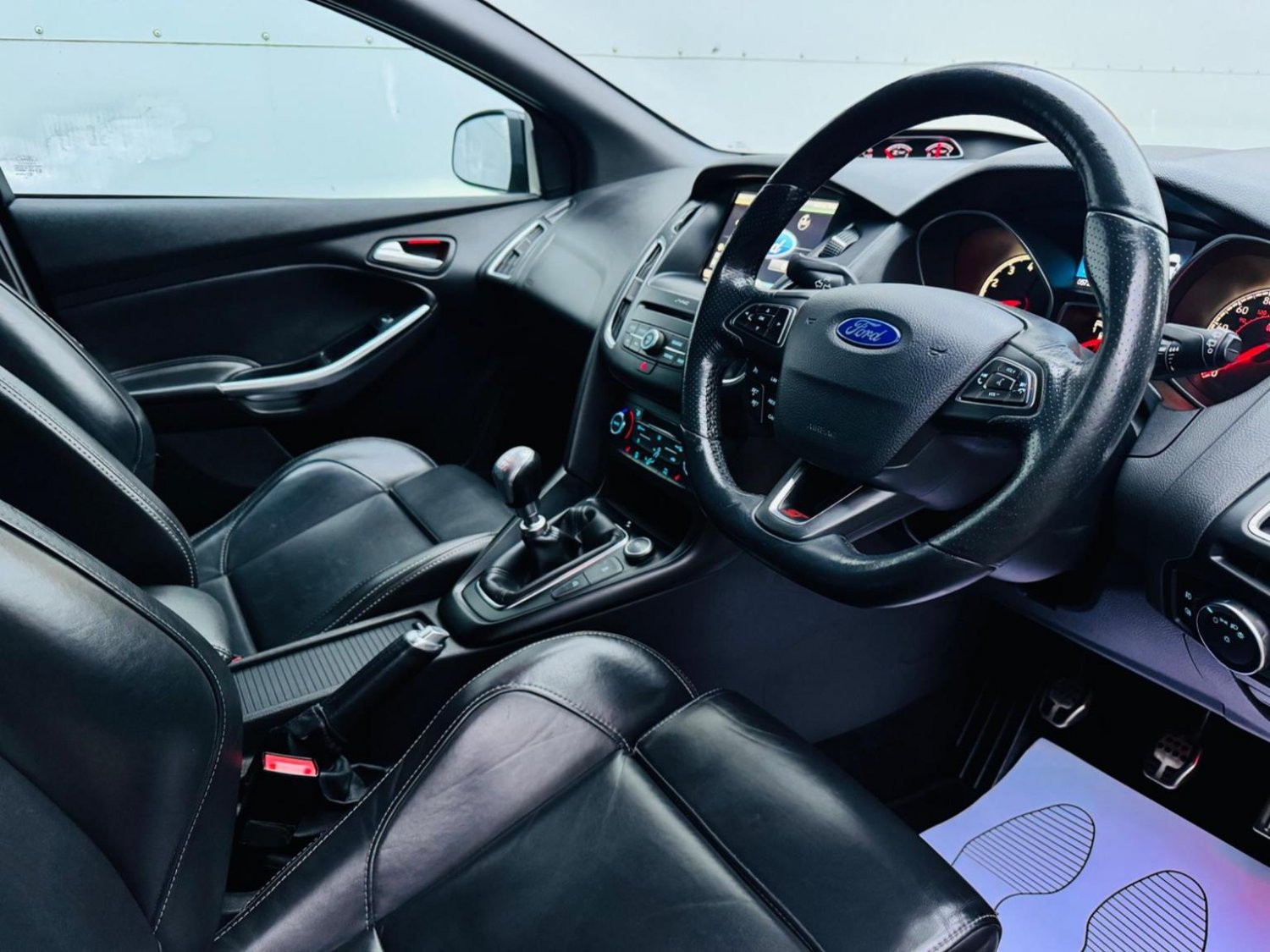 Automatic Dimming Rear View Mirror, Automatic Rain Sensing Wipers, Bi-Xenon Headlights, Bluetooth Handsfree Phone System, Body Colour Bumpers, Body Colour Exterior Mirrors, Brake Calipers Painted Red, Centre Console - additional 12V power socket, City Pack, Colour TFT Instrument Cluster Display, Cruise Control with Adjustable Speed Limiter, Door Handles - Body Colour, Door Mirrors with Integrated Indicators, Drivers Airbag, EBA - Emergency Brake Assist, EBD - Electronic Brakeforce Distribution, ESP - Electronic Stability Programme, Electric Windows - Front and Rear with One Touch, Electric Windows - Global Opening-Closing, Emergency Assistance, Emergency Brake Warning, Enhance TVC - Torque Vectoring Control, Floor Mats - Carpet - Front and Rear, Ford AM-FM CD Audio System, Ford DAB Audio System, Ford Easy-Fuel Capless Refuelling System, Ford SYNC2, Front Seat Belts with Pre-Tensioners, Fuel Computer, Gearshift Indicator Light, Handbrake Cover - Leather, Headlights - Adaptive, Headlights - Automatic, Headlights - Follow Me Home, Headlights - Jet Wash, Headlights - Static Cornering Lights, Heated Driver and Passenger Seats, Heated Front Windscreen, Height-Adjustable Mounts on Front Seat Belts, Hill Start Assist, IPS - Intelligent Protection System, ISOFIX - Child Seat Attachments, KeyFree System, Keyless Start, LED Daytime Running Lights, Locking Wheel Nuts, Mini Steel Spare Wheel, MyKey, Parking Sensor - Rear, Pedals - Collapsible, Pollen Filter, Power Fold Door Mirrors, Power Steering, Premium Centre Console, Premium Centre Console - Sliding Armrest, Recaro Sculpted 3-Seater Rear Bench Seat, ST Front Door Scuff Plates - Illuminated, ST Full Body Styling Kit, Seat - Driver Electric Height Adjustment, Seats - 60-40 Rear Split Back, Seats - Front 8-Way Power Adjustment, Seats - Front Recaro Sports, Speakers - x6, Speed Limiter, Steering Column - Collapsible, Steering Column - Rake and Reach Adjustment, Steering Wheel - Audio Controls, Steering Wheel - ST Leather with Red ST Logo, Suspension - Sports, Thatcham Category 1 Alarm, Traction Control - TC, Tyre Pressure Monitoring System, USB Connection, Unique ST Leather Gearshift Knob, Unique ST Rear Spoiler, Voice Control - Audio, 12V Power Socket - Front, 18in Alloy Wheels - 10 Spoke - Rock Metallic, 8in Touchscreen Colour Display, ABS - Anti-lock Braking System, AUX Connection, Air Conditioning - Dual Zone Electronic Automatic Temperature Control, Airbag - Front Passenger, Airbags - Curtain, Airbags - Curtain Rear, Airbags - Side Impact, Anti-Submarining Seat Bases