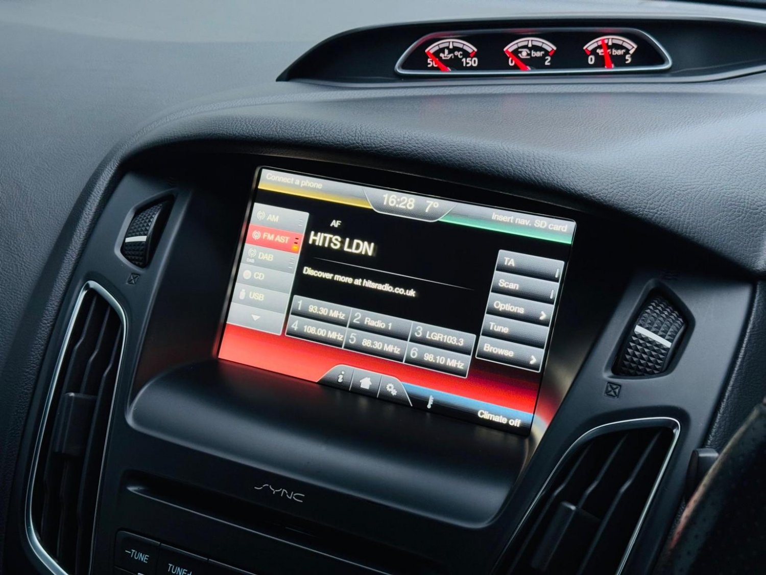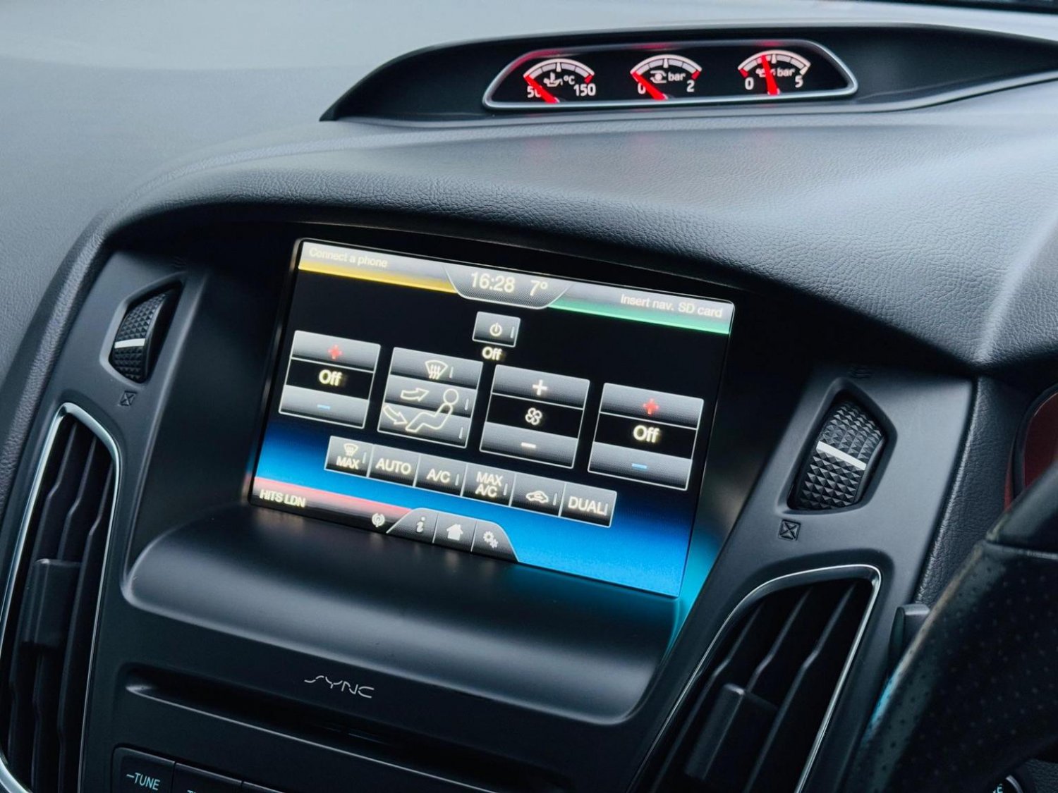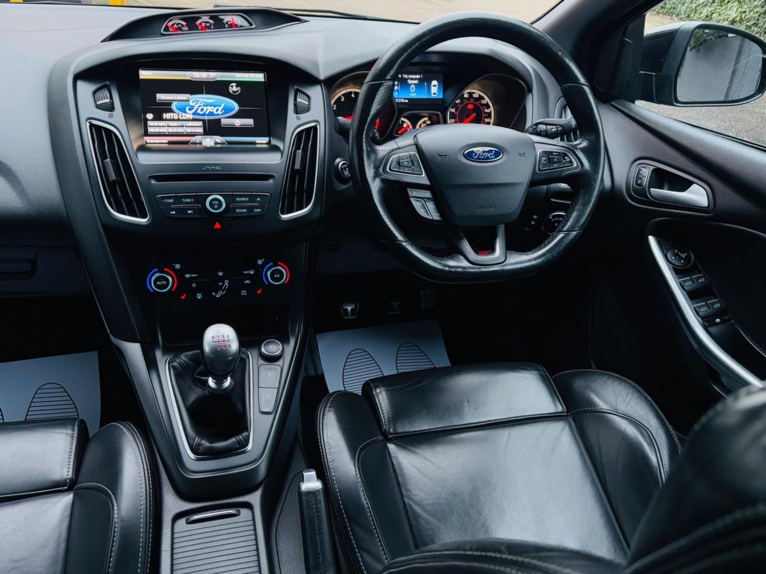 Automatic Dimming Rear View Mirror, Automatic Rain Sensing Wipers, Bi-Xenon Headlights, Bluetooth Handsfree Phone System, Body Colour Bumpers, Body Colour Exterior Mirrors, Brake Calipers Painted Red, Centre Console - additional 12V power socket, City Pack, Colour TFT Instrument Cluster Display, Cruise Control with Adjustable Speed Limiter, Door Handles - Body Colour, Door Mirrors with Integrated Indicators, Drivers Airbag, EBA - Emergency Brake Assist, EBD - Electronic Brakeforce Distribution, ESP - Electronic Stability Programme, Electric Windows - Front and Rear with One Touch, Electric Windows - Global Opening-Closing, Emergency Assistance, Emergency Brake Warning, Enhance TVC - Torque Vectoring Control, Floor Mats - Carpet - Front and Rear, Ford AM-FM CD Audio System, Ford DAB Audio System, Ford Easy-Fuel Capless Refuelling System, Ford SYNC2, Front Seat Belts with Pre-Tensioners, Fuel Computer, Gearshift Indicator Light, Handbrake Cover - Leather, Headlights - Adaptive, Headlights - Automatic, Headlights - Follow Me Home, Headlights - Jet Wash, Headlights - Static Cornering Lights, Heated Driver and Passenger Seats, Heated Front Windscreen, Height-Adjustable Mounts on Front Seat Belts, Hill Start Assist, IPS - Intelligent Protection System, ISOFIX - Child Seat Attachments, KeyFree System, Keyless Start, LED Daytime Running Lights, Locking Wheel Nuts, Mini Steel Spare Wheel, MyKey, Parking Sensor - Rear, Pedals - Collapsible, Pollen Filter, Power Fold Door Mirrors, Power Steering, Premium Centre Console, Premium Centre Console - Sliding Armrest, Recaro Sculpted 3-Seater Rear Bench Seat, ST Front Door Scuff Plates - Illuminated, ST Full Body Styling Kit, Seat - Driver Electric Height Adjustment, Seats - 60-40 Rear Split Back, Seats - Front 8-Way Power Adjustment, Seats - Front Recaro Sports, Speakers - x6, Speed Limiter, Steering Column - Collapsible, Steering Column - Rake and Reach Adjustment, Steering Wheel - Audio Controls, Steering Wheel - ST Leather with Red ST Logo, Suspension - Sports, Thatcham Category 1 Alarm, Traction Control - TC, Tyre Pressure Monitoring System, USB Connection, Unique ST Leather Gearshift Knob, Unique ST Rear Spoiler, Voice Control - Audio, 12V Power Socket - Front, 18in Alloy Wheels - 10 Spoke - Rock Metallic, 8in Touchscreen Colour Display, ABS - Anti-lock Braking System, AUX Connection, Air Conditioning - Dual Zone Electronic Automatic Temperature Control, Airbag - Front Passenger, Airbags - Curtain, Airbags - Curtain Rear, Airbags - Side Impact, Anti-Submarining Seat Bases